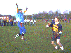 Phoenix Park, Dublin, Ireland) 1996 Irish League 8-0-0* Team Notes: Several enthusiastic people who threw a football around Herbert Park, Ballsbridge for several months formed the Dublin Tornadoes in 1986. Very quickly the team grew as interest in American Football increased in the capital as well as in other parts of the country. The team moved training location several times due to an ever increasing squad and finally settled in the Phoenix Park. They took part in their first Irish League in 1987, finishing with a respectable 3 wins and 6 losses. Between 1988 and 1991 they participated in the League with an increasing squad and their players gained more playing experience and in some cases coaching experience. They sent some of the senior players to a coaching clinic run by Marty Shottenheimer in Loughborough, England. In 1990 they played a game against the Boston Townies, a senior college team, going down only 12-0. The most respectable result by an Irish team against foreign opposition ever. In 1992 they reached their first Irish League Semi-Final under the guidance of Coach Tony Howie, a previous Notre Dame training assistant. The Antrim Bulldogs beat them with two late 4th quarter touchdowns. In 1993 Coach Dave Curran took over the running of the team and guided they to their first unbeaten season, 13-0 and their first Shamrock Bowl appearance. In the final at the Iveagh Grounds, Crumlin, they defeated arch-rivals the Dublin Celts, 31-2. Coach Bri�n Sutton took control of the team in 1994 and continued Coach Currans' teachings and method of play throughout the year. They went through the year with 10 wins and only one loss. Again, they reached and won the Shamrock Bowl in 1994, beating the Carrickfergus Knights 21-15 in the final, played in Newry Co. Down. Coach Curran returned to the Football Forum, becoming Offensive Coach with the newly formed Irish National Team. Another highlight of the Tornadoes history took place in July 1994 when they beat a visiting Canadian alumi team 19-18. They had travelled around Europe and had not been beaten until their visit to Dublin. Sadly, in November 1994 Coach Curran passed away, leaving the whole Irish American Football community stunned. His passing has since acted as an inspiration to their club to achieve higher goals. In 1995 they continued their tremendous record, going unbeaten through the year 10-0 and beating the Carrickfergus Knights again in the Shamrock Bowl by 44-12. The final was held in their home grounds at Islandbridge. 1996 continued as we left off. They went through the season unbeaten, 8-0 and again won the Irish League Title. However, they came up against very strong opposition in the Shamrock Bowl and were beaten by the Dublin Lightning, 24-12. 1997 was not been a successful year. Due to retirements and emigrations our player roster is down to a level that makes it unsafe for us to participate in this years Irish League. However, most of our squad will continue training with the newly formed Dublin Bulls in order to keep fit, alert and in football shape as well as to help out our latest new team find their feet in the world of American Football. Based: Truro RFC, St.Clements Hill, Truro, Cornwall (also played at