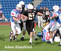 After forcing Finland to punt, Marc Cohen made Britball history by walking out onto the field for a record 12th cap for the Lions beating the record of 11 held by Colin Nash. An unsuccessful drive followed, and Cohen punted with Finland taking over on their own 37 yard line. Good tackling by Rowe, Roach and Hackshaw led to Finland having a 4th and 1 from the Lions 36 yard line, and on 4th down Paukkula ran for 19 yards and the first down. Five plays later and Paukkula ran over left guard from 3 yards out to put Finland 7-0 up. On their next drive, the Lions started at their 20. Drane completed passes of 12 yards (Simms) and 16 yards (Palumbo), and was backed up by some good running from Campbell. At 4th and 1 from Finland’s 38 yard line, Brian Long went for it, but was stopped for no gain. On Finland’s next play Paukkula ran for 46 yards to the Lions 23, and after a roughing the passer penalty by Powell Finland completed an 8 yard pass for a TD to put them 14-0 up.