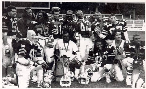 Kneeling at Front #36 - Errol Perkins #77 - Steve James (US) #25 - Patrick Loftman #65 - Greg Cross #18 - Russ Jensen (US) Holding Trophy Norman "Boo" Thomas #34 Bottom Right Lloyd O'Neill #47