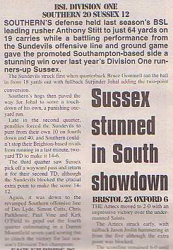 25th April - Southern Sundevils 20-12 Sussex Thunder, BSL Division One. Report