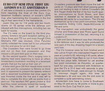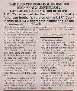 2nd May - Amsterdam Crusaders 0-37 London O's, Euro Cup Semi-Final 1st leg.Report
