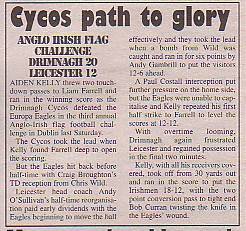 13th June - Drimnagh Cycos 20-12 Leicester Eagles, Flag Friendly. Report