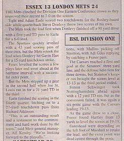 20th June - Essex Spartans 13-24 London Mets, BSL Division One. Report