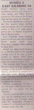 20th June - Sussex Thunder 0-20 East Kilbride Pirates, BSL Division One. Report
