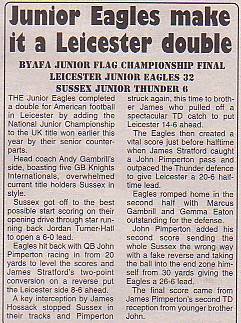 27th June - Leicester Jnr Eagles 32-6 Sussex Jnr Thunder, BYAFA Junior Flag Final. Report