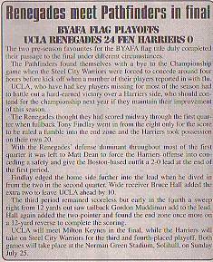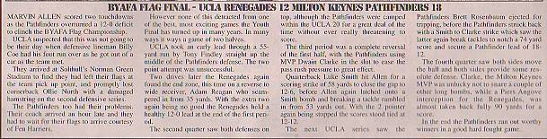 25th July - UCLA Renegades 12-18 Milton Keynes Pathfinders, BYAFA Youth Flag Final. Report
