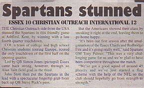 18th July - Essex Spartans 10-12 Christian Outreach International, Friendly. Report