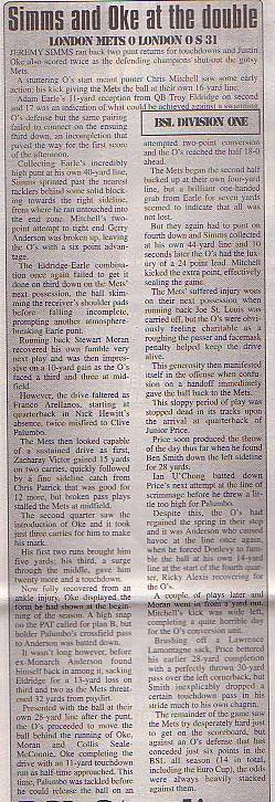 9th August - London O's 43-7 Oxford Saints, BSL Div.1 Quarter-Final. Report