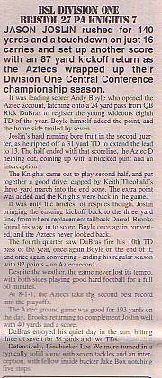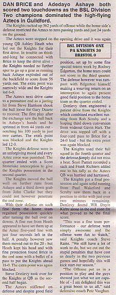 27th May - PA Knights 30-0 Bristol Aztecs, BSL Division One. Report