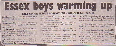 1st August - Norwich Devils 14-22 Essex Spartans, BSL Division One. Report