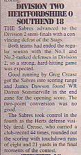 8th August - Hertfordshire Stags 0-18 Sabres, BSL Division Two Quarter-Final.Report