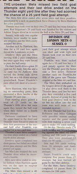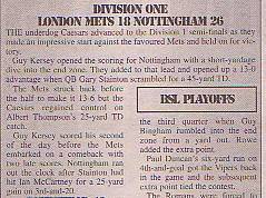 - Nottingham Caesars 18-26 London Mets, BSL Division One Quarter-Final. Report