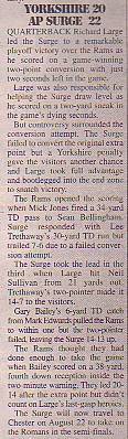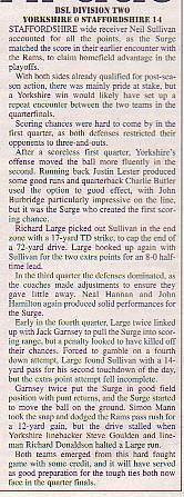 Yorkshire Rams 20-22 AP Surge, BSL Division Two Quarter-Final.Report