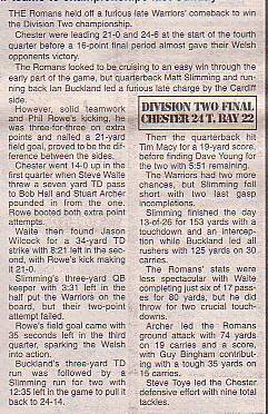 5th September - Chester Romans 24-22 Tiger Bay Warriors, BSL Division Two Final. Report