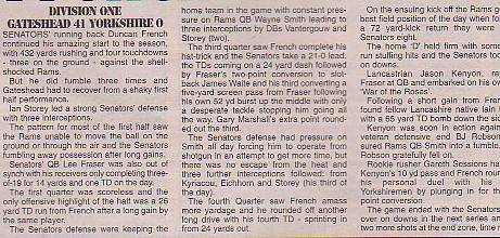 3rd May - Gateshead Senators 41-0 Yorkshire Rams, BSL Division One. Report