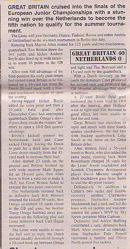 10th May - Great Britian Lions Youth 40-0 Netherlands Youth, Euro Championship