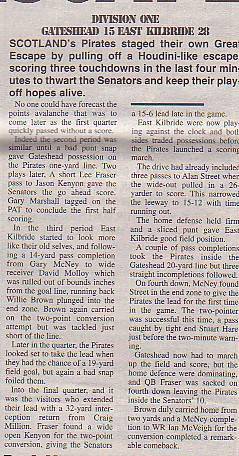8th July - East Kilbride Pirates 22-15 Gateshead Senators, BSL Division One.Report