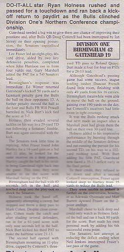 14th June - Birmingham Bulls 42-19 Gateshead Senators, BSL Division One.Report