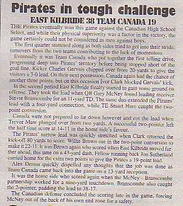 14th June - East Kilbride Pirates 38-19 Team Canada, Friendly. Report