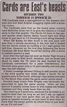 14th June - Norwich Devils 19-26 Ipswich Cardinals, BSL Division Two. Report