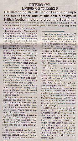 27th May - Southern Sundevils 48-8 Essex Spartans, BSL Division One. Report