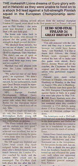 18th July - Finland 34-9 GB Lions, European Championship Semi-Final. Report