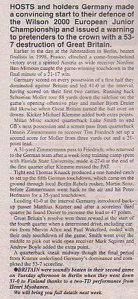 2nd August - Germany Youth 53-7 GB Lions Youth, European Championship.Report