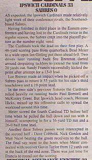 2nd August - Ipswich Cardinals 33-0 Sabres, BSL Division Two Quarter-Final.Report