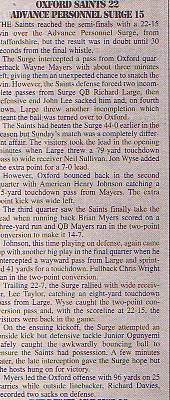 2nd August - Oxford Saints 22-15 AP Surge, BSL Division Two Quarter-Final.Report