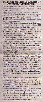 2nd August - PA Knights 33-0 Merseyside Nighthawks, BSL Division Two Quarter-Final. Report