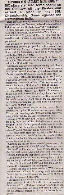 23rd May - East Kilbride Pirates 6-47 London O's, BSL Division One. Report