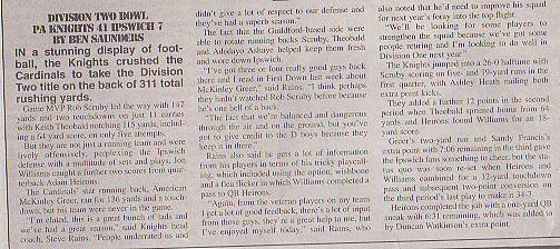 6th September - PA Knights 41-7 Ipswich Cardinals, BSL Division Two Final.Report