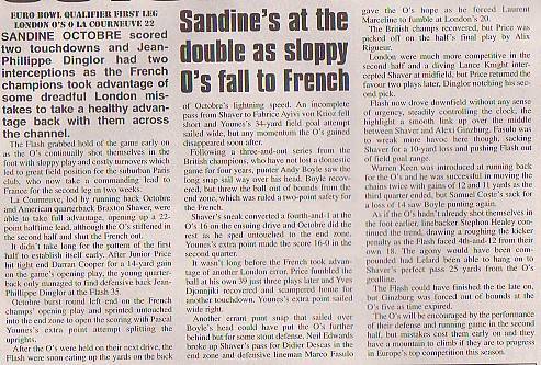 29th April - London O's 0-22 La Courneurve Flash (France), EuroBowl Qualifier 1st