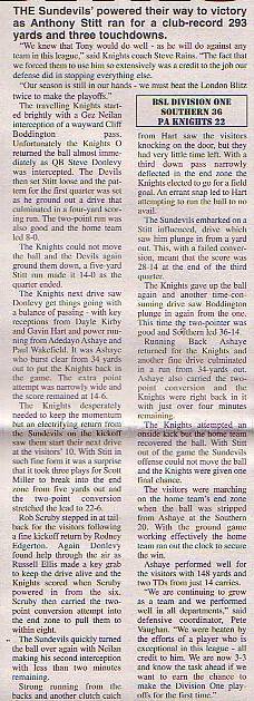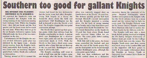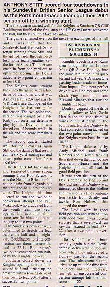 24th June - Southern Sundevils 36-22 PA Knights, BSL Division One. Report
