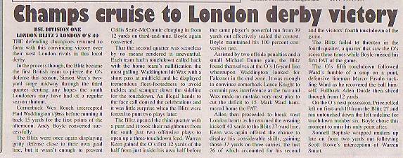 16th August - London O's 28-0 Bristol Aztecs, BSL Div.1 Semi-Final. Report