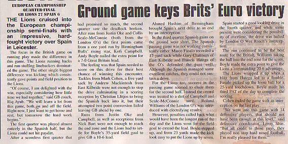 17th June - GB Lions 27-6 Spain, European Championship Quarter-Final. Report