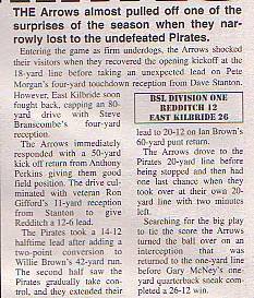 1st July - Redditch Arrows 12-26 East Kilbride Pirates, BSL Division One. Report