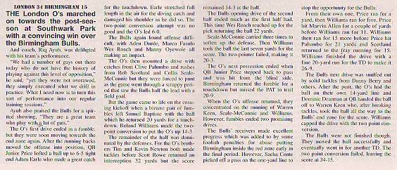 26th August - London O's 27-0 Birmingham Bulls, BSL Division One Semi-Final.Report