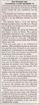 29th July - Gateshead Senators 14-18 East Kilbride Pirates, BSL Division One.Report