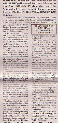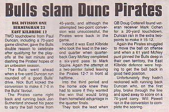 August - Birmingham Bulls 23-12 East Kilbride Pirates, BSL Division One.Report