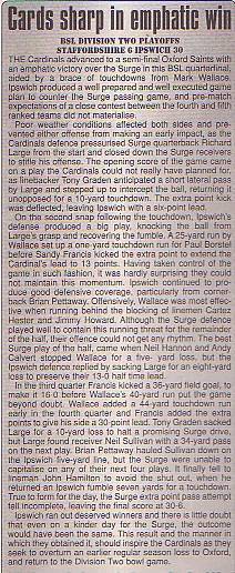 9th September - Ipswich Cardinals 47-15 Norwich Devils, BSL Division Two Final.Report
