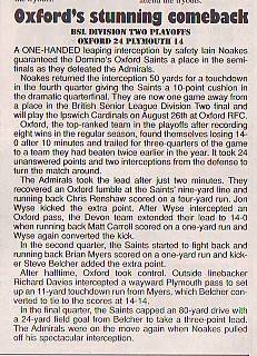 12th August - Oxford Saints 24-14 Plymouth Admirals, BSL Division Two Quarter-Final. Report